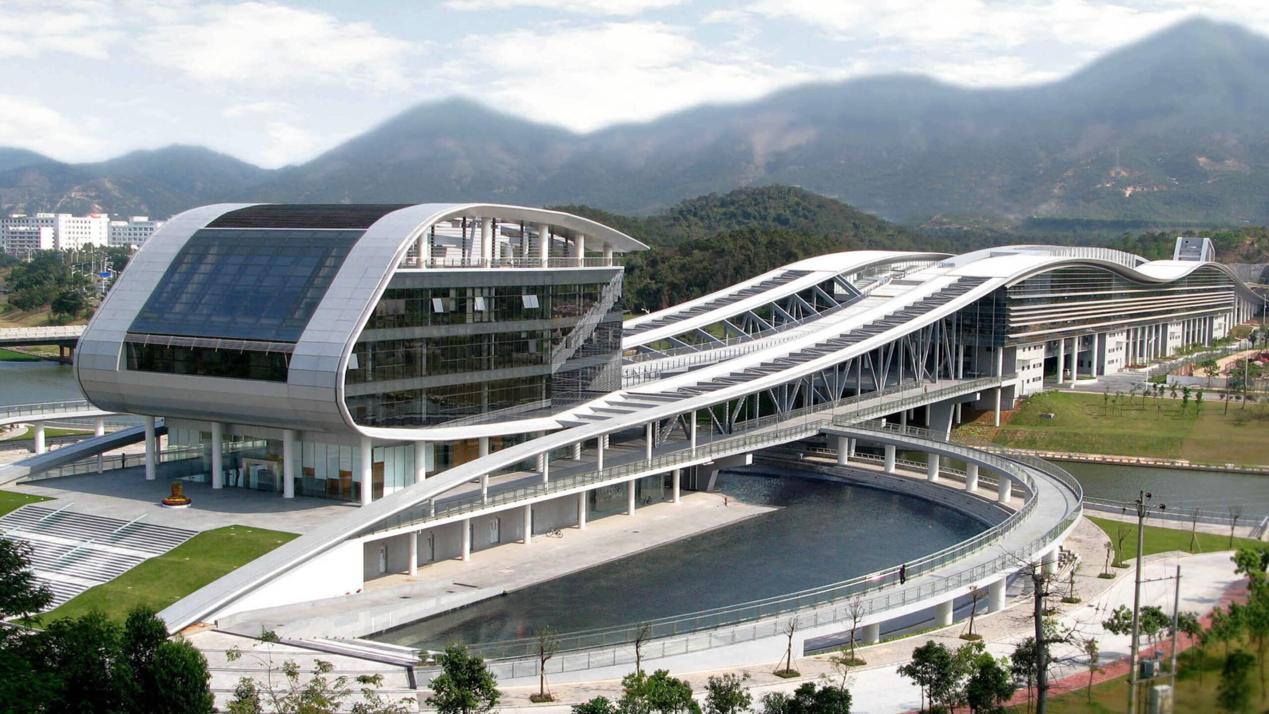 Spanning nearly 5 square kilometers, a university town features diverse environments including academic zones, forested areas, and lakes.